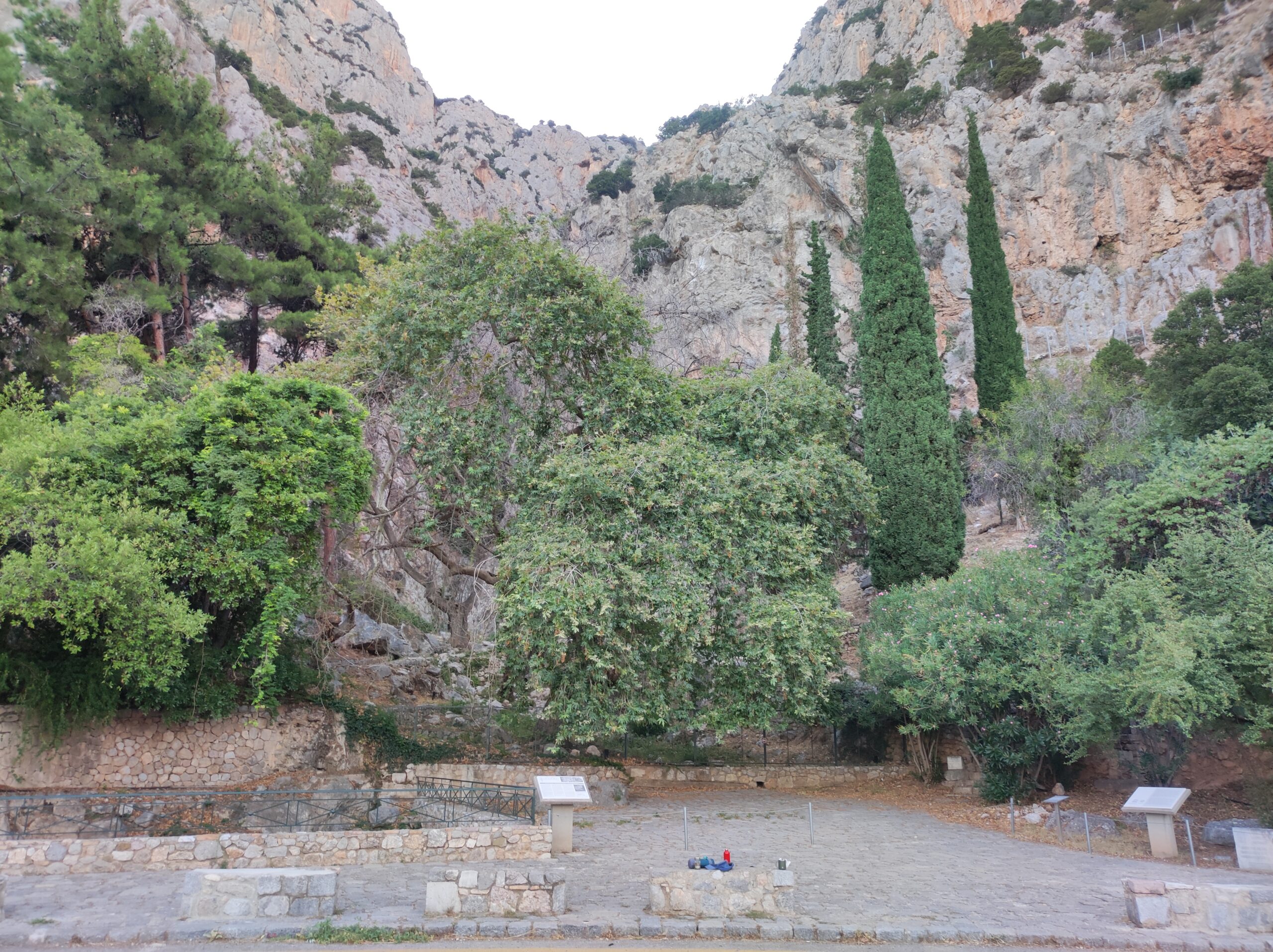 Η Είσοδος Των Φαιδριάδων Πετρών Όπου Στα Αριστερά Και Κάτω Όπως Κοιτάζετε, Βρίσκεται Η Κασταλία Κρήνη Της Αρχαιότητας Όπως Απεικονίστηκε Σε Φωτογραφία Του Κινητού Μου Την Κυριακή 11/08/2025. Οι Καφέδες Εκεί Στο Πέτρινο Παγκάκι Που Φαίνονται, Είναι Δικοί Μου Και Μόνο, Αστειεύομαι…